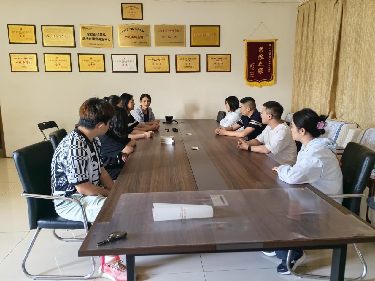 青年在社会课堂中受教育、长才干、作贡献,厚植爱农情怀,练就兴农本领,在乡村振兴的大舞台上建功立业。2025年7月6日,资源与环境系研究生党支部书记华玲玲带领三支暑期社会实践团赴北京昌平军都山红苹果合作社开展暑期社会实践服务对接,并调研了合作社在学生实习、就业等方面的需求。军都山红苹果合作社负责人张增阔接待了实践团师生代表。