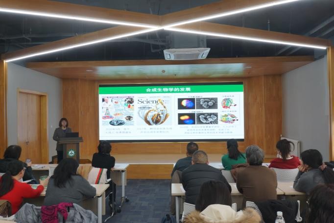 重点实验室王晓琴教授做了题目为“植物底盘:合成生物学研究的新热点”的讲座,从自然进化选育讲到现代合成生物学技术的革命,植物底盘在合成生物学的应用前景等方面进行了深入浅出的讲解。重点实验室相关老师先后带领密云区三中老师们参观了科研实验室和重点实验室公共平台仪器。